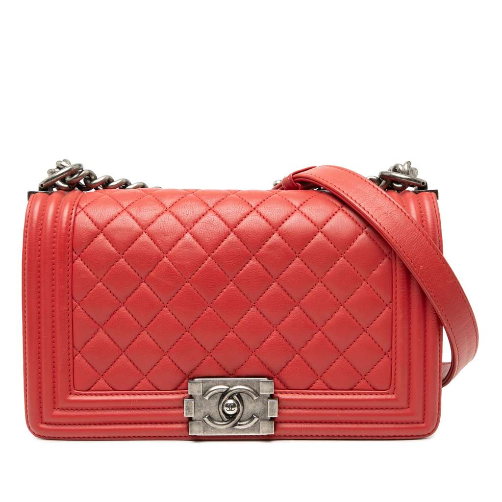 Chanel Old Medium Quilted Lambskin Boy Flap Red Medium Leath
