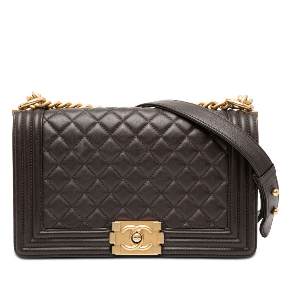 Chanel Old Medium Quilted Lambskin Boy Flap Brown Medium Lea