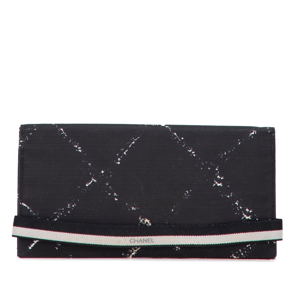 This long wallet features a nylon body, a flap with slip through closure, and interior zip and slip compartments.