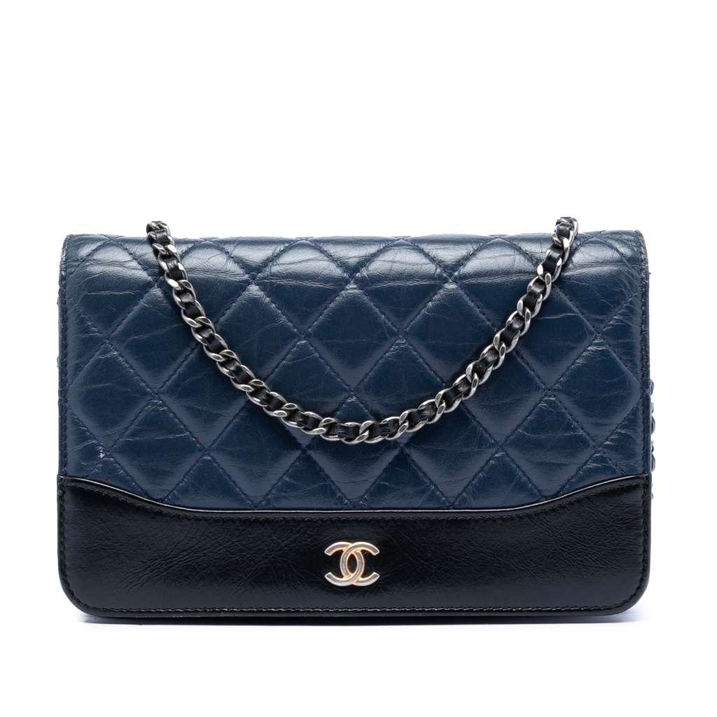 Chanel Quilted Aged Calfskin Gabrielle Wallet On Chain Blue