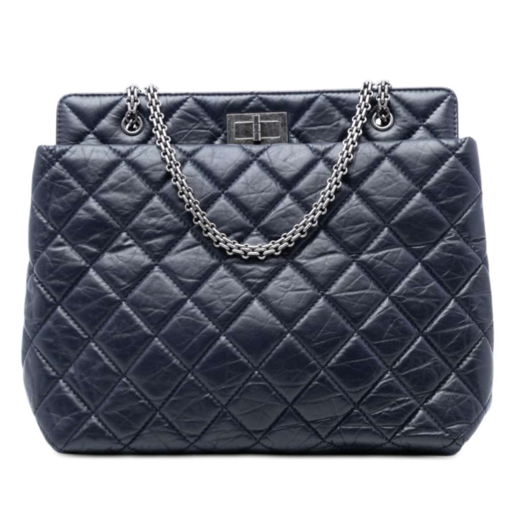 Chanel Quilted Aged Calfskin Reissue 2.55 Tote Blue Medium L
