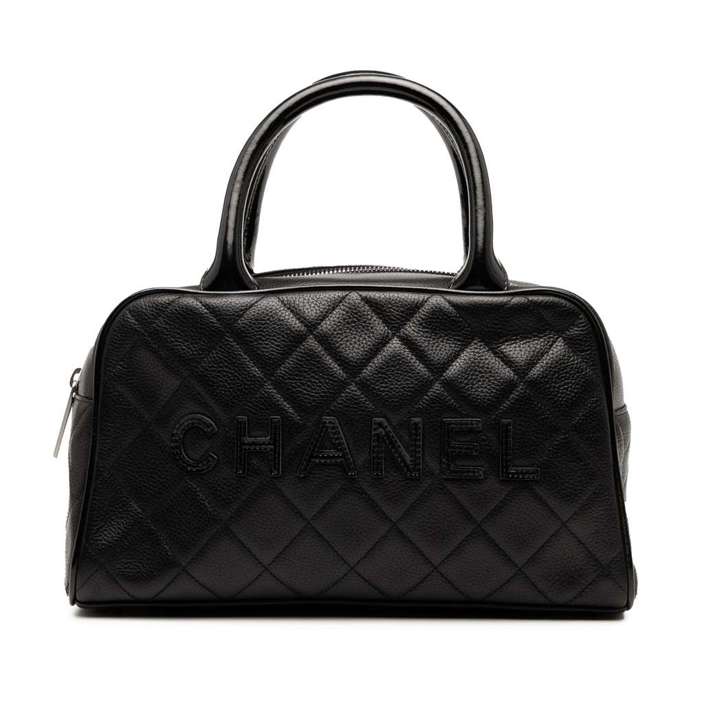 This handbag features a quilted calfskin leather body, rolled leather handles, a top zip closure, an exterior back zip pocket, and an interior zip pocket.