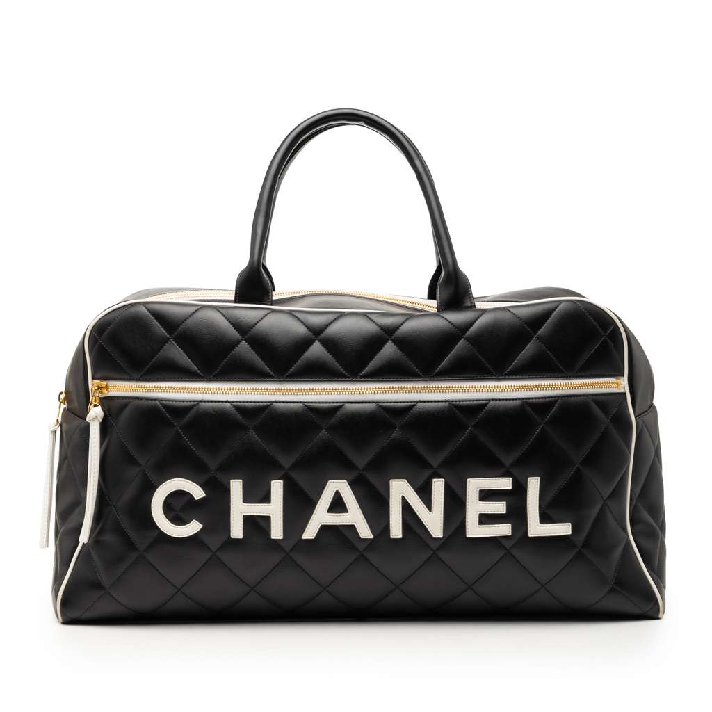 Chanel Quilted Calfskin Logo Bowler Weekend Bag Black X-Larg