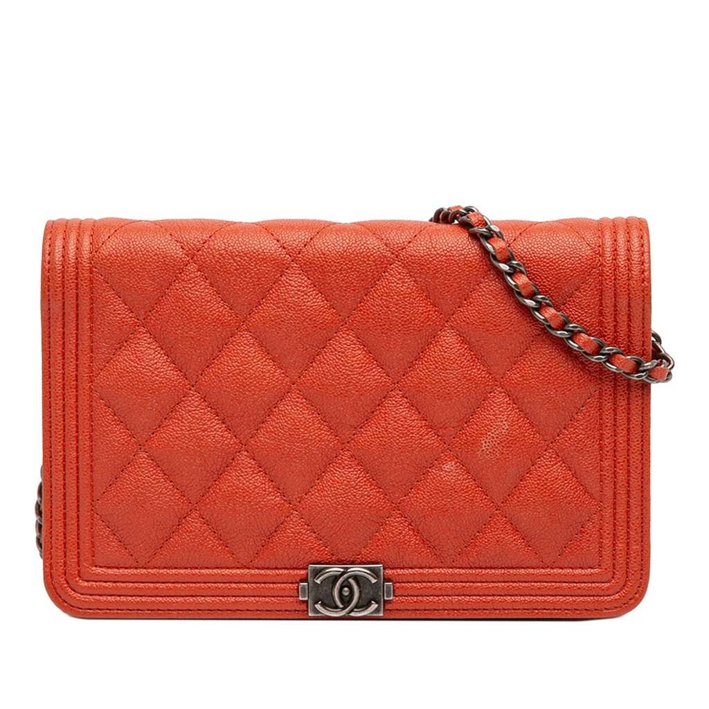 Chanel Quilted Caviar Boy Wallet on Chain Orange Mini Leathe