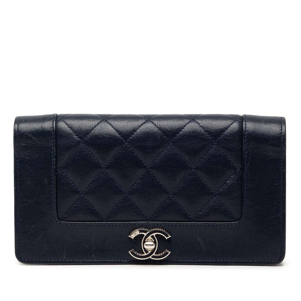 Quilted Chevron Sheepskin Mademoiselle Vintage Flap Long Wallet