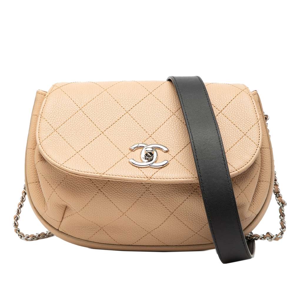 Chanel Quilted Grained Calfskin Accordion Saddle Bag Beige S