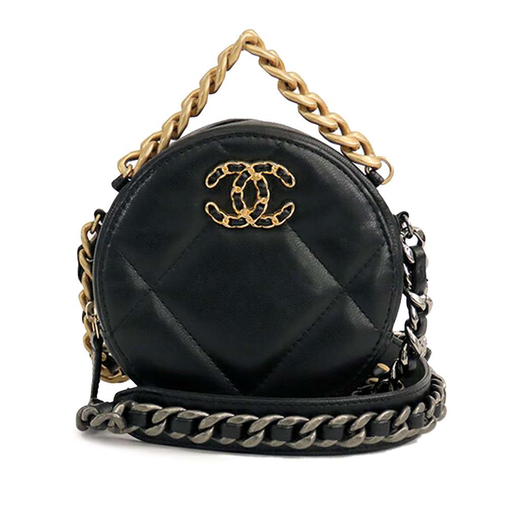 This satchel features a quilted lambskin leather body, a chain handle, a leather woven chain shoulder strap, a top zip closure, and an interior slip pocket.