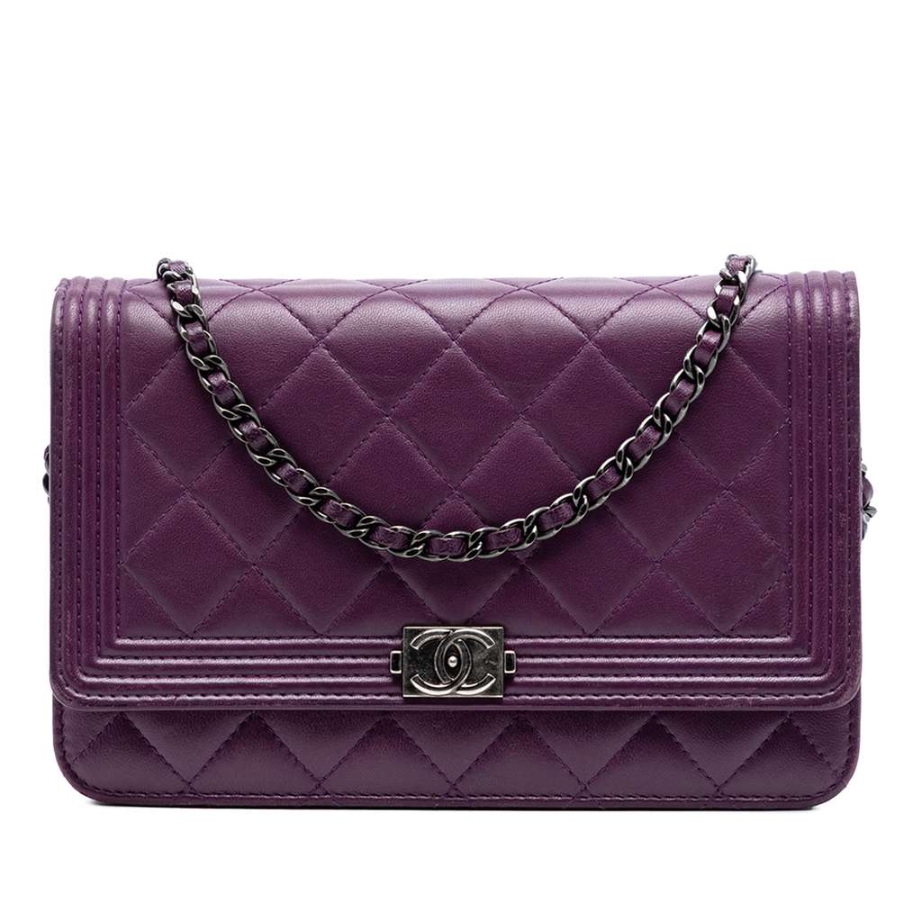 Chanel Quilted Lambskin Boy Wallet on Chain Purple Mini Leat