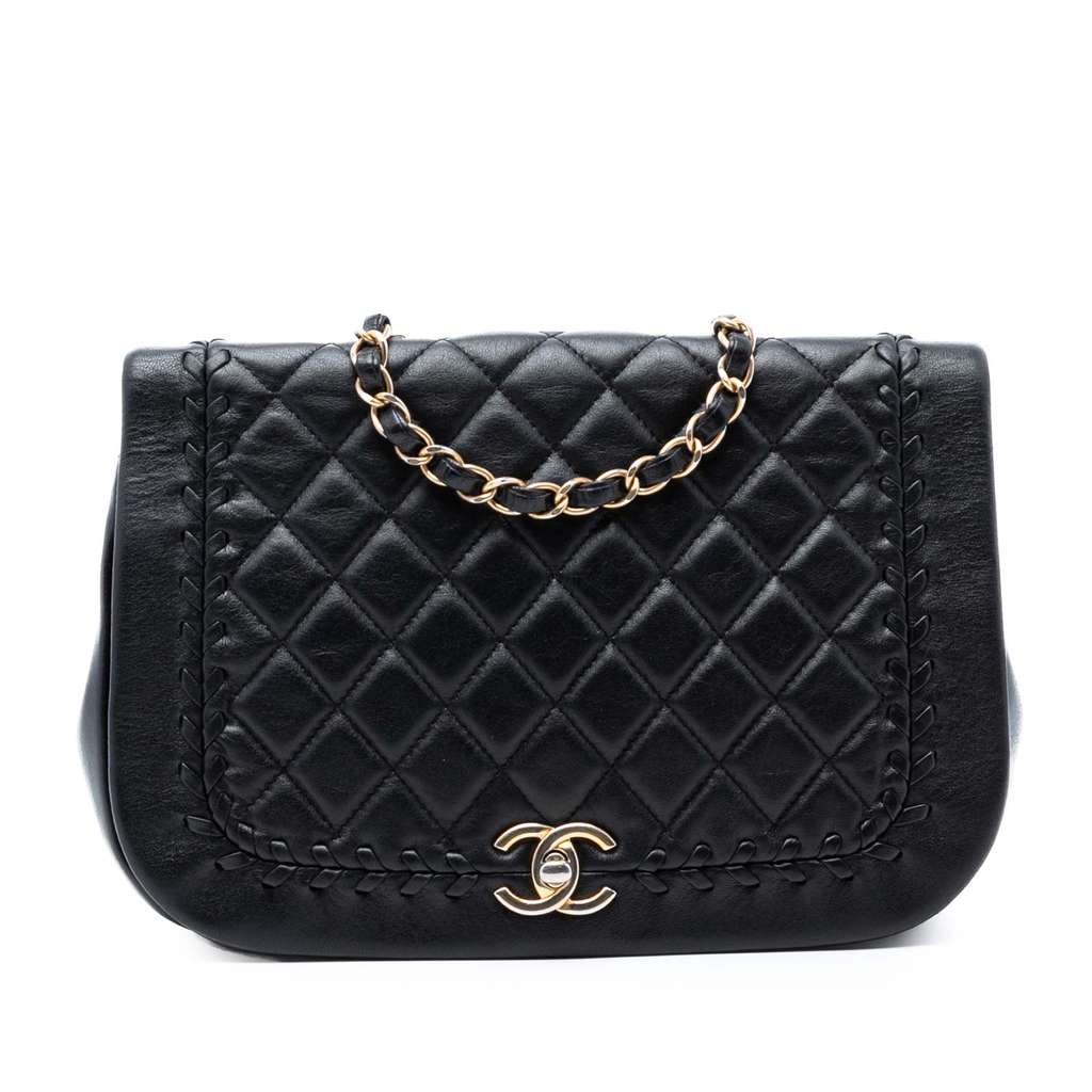 Quilted Lambskin Braided Saddle Flap