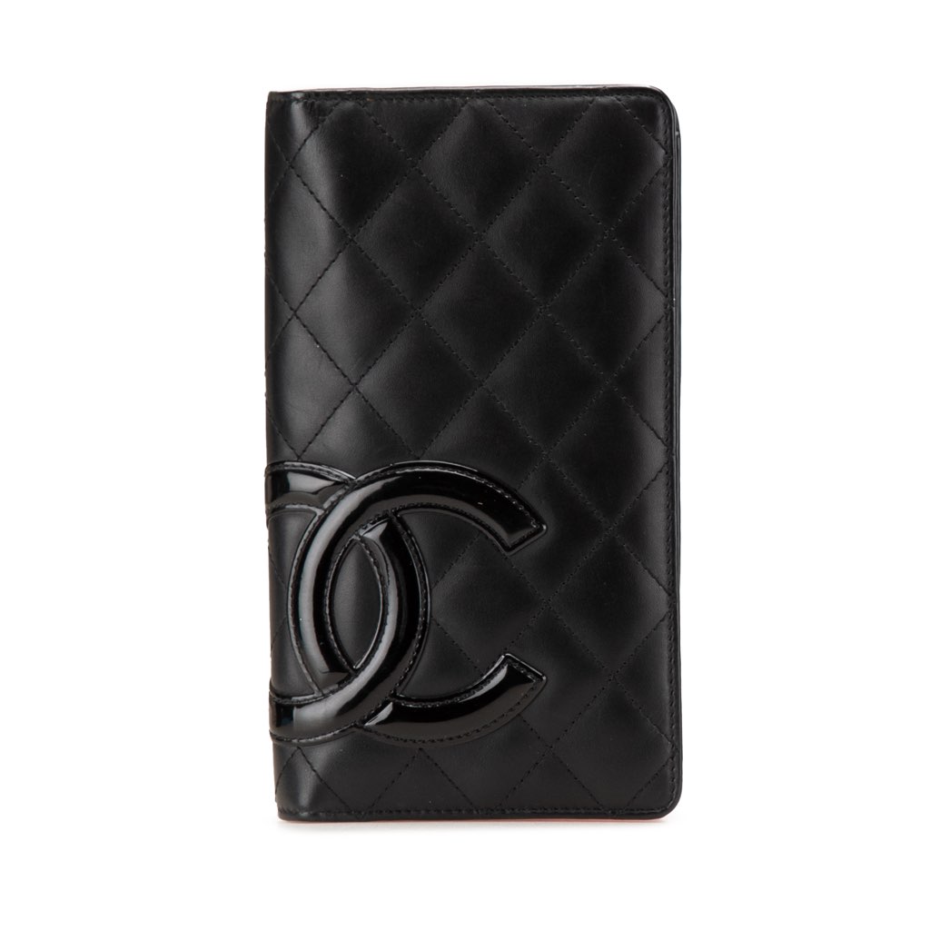 This wallet features a quilted lambskin leather body, and interior zip and slip pockets.