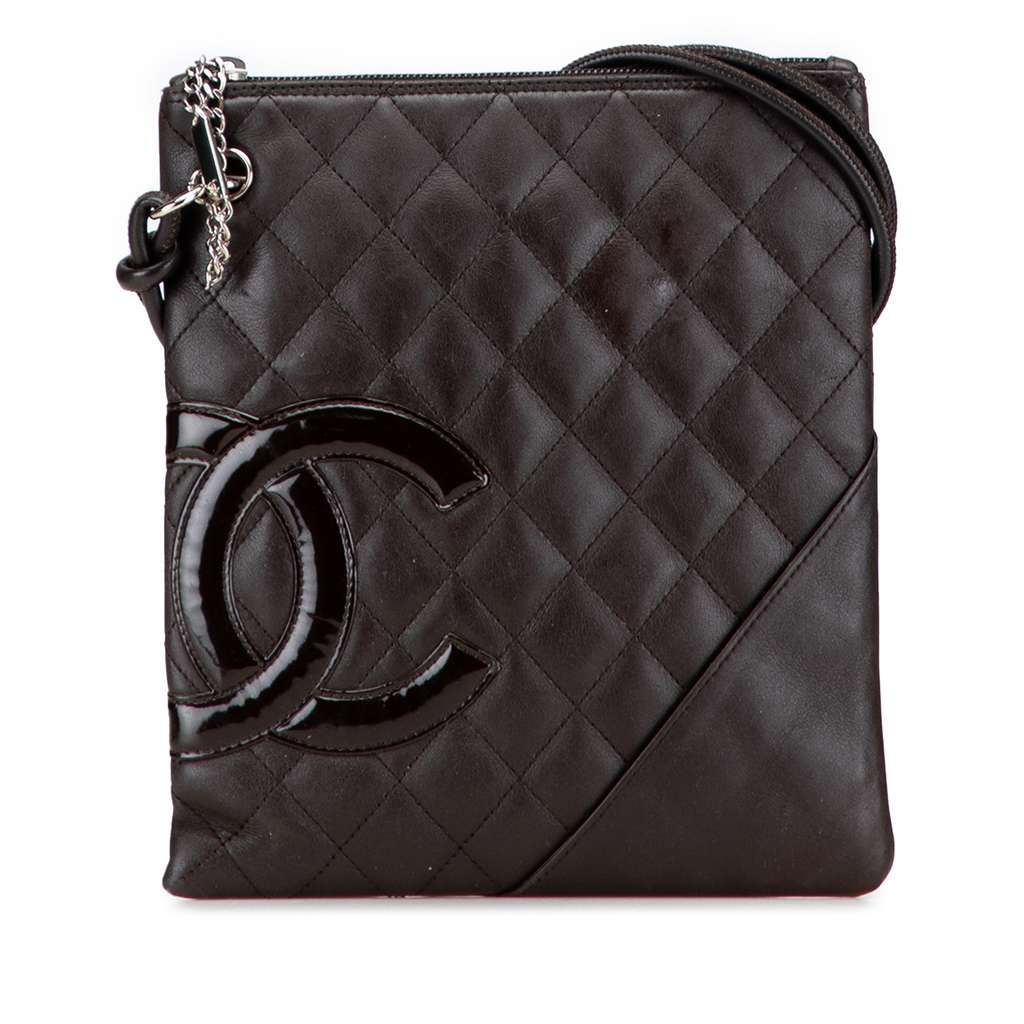 The Cambon Ligne crossbody features a quilted leather body and interlocking Cs, rolled leather shoulder strap, a top zip closure and an interior slip and zip pocket.