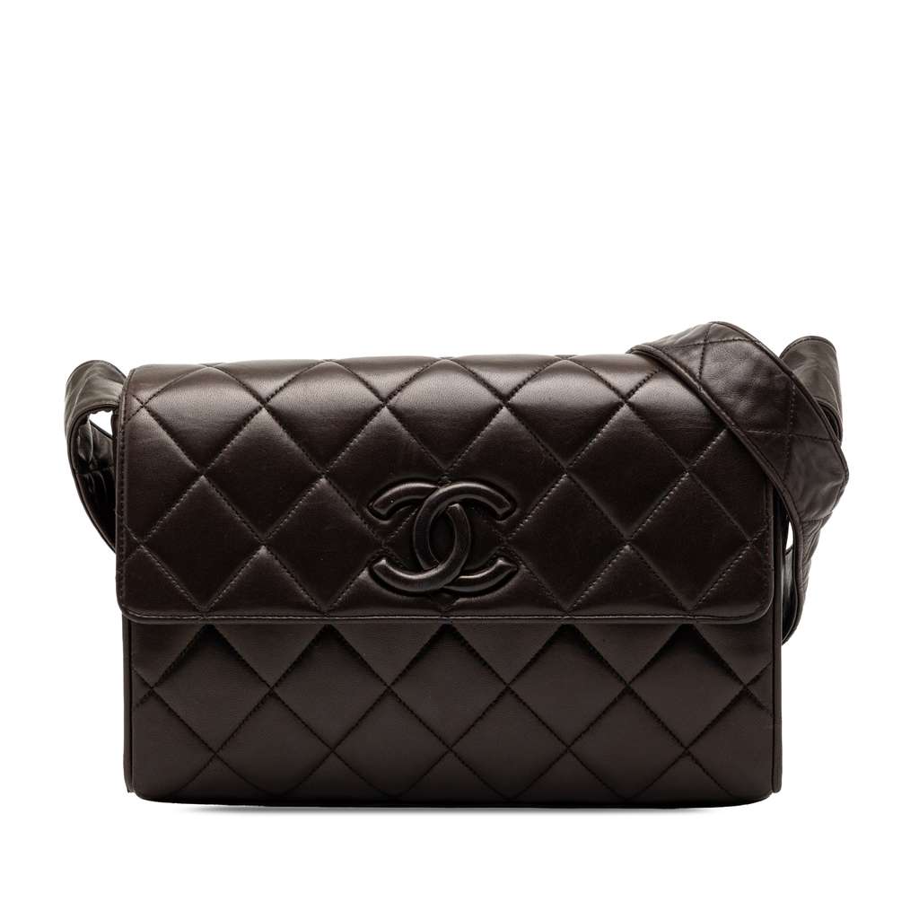 Chanel Quilted Lambskin Covered CC Flap Brown Medium Leather