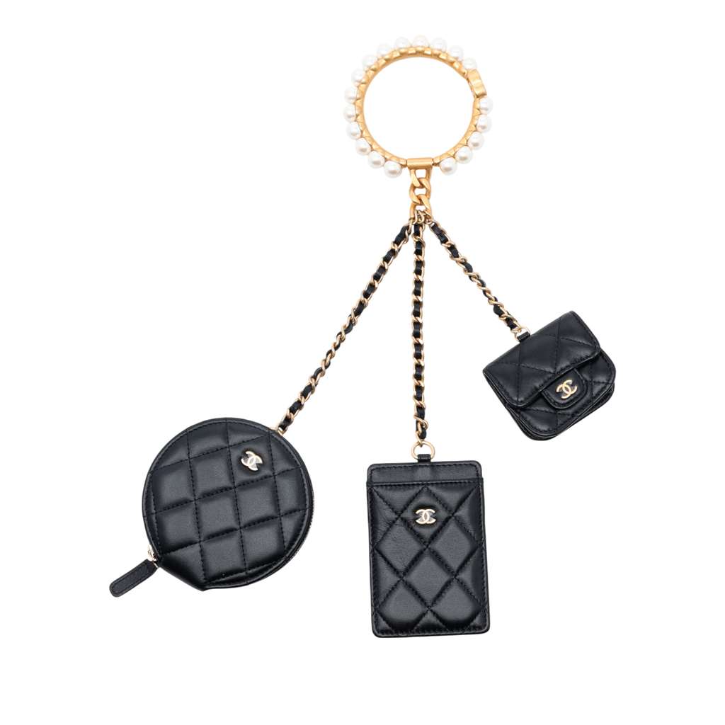 Chanel Quilted Lambskin Pearl Crown CC Wristlet Multi Pouche