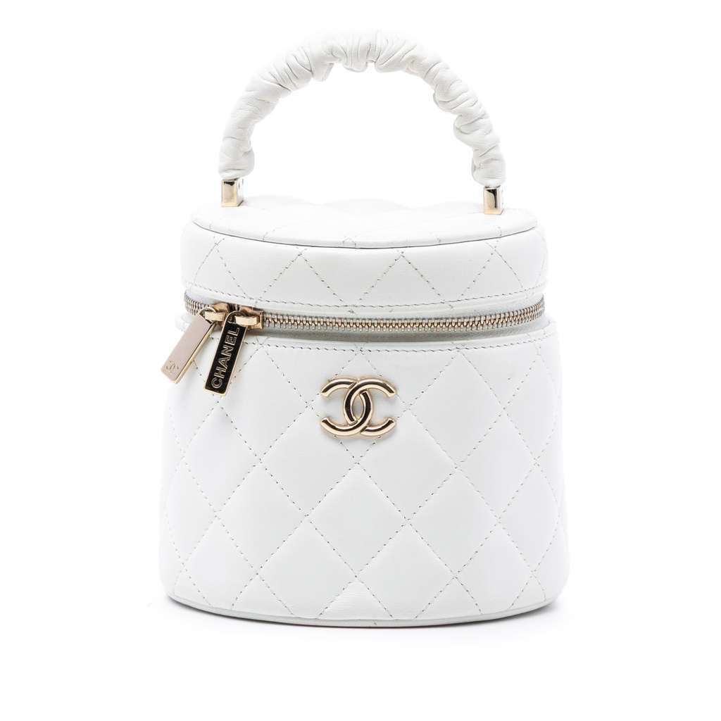 Chanel Quilted Lambskin Ruched Handle Vanity Case White Mini