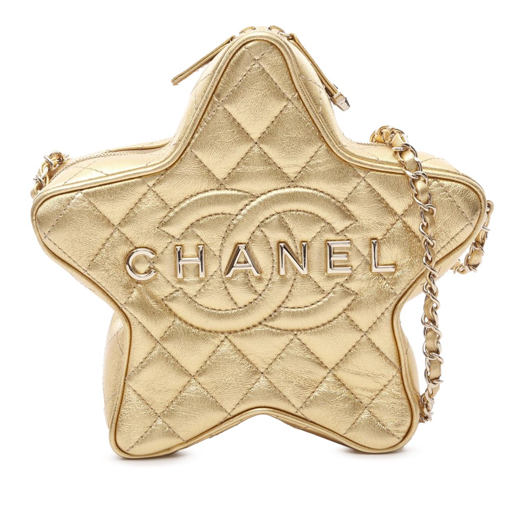 This crossbody bag features a quilted lambskin leather body, a leather woven chain link strap, a top zip closure, an exterior back slip pocket, and interior slip pockets.
