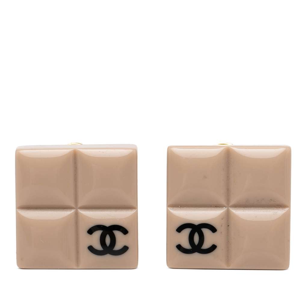 Chanel Resin CC Chocolate Bar Clip On Earrings Beige