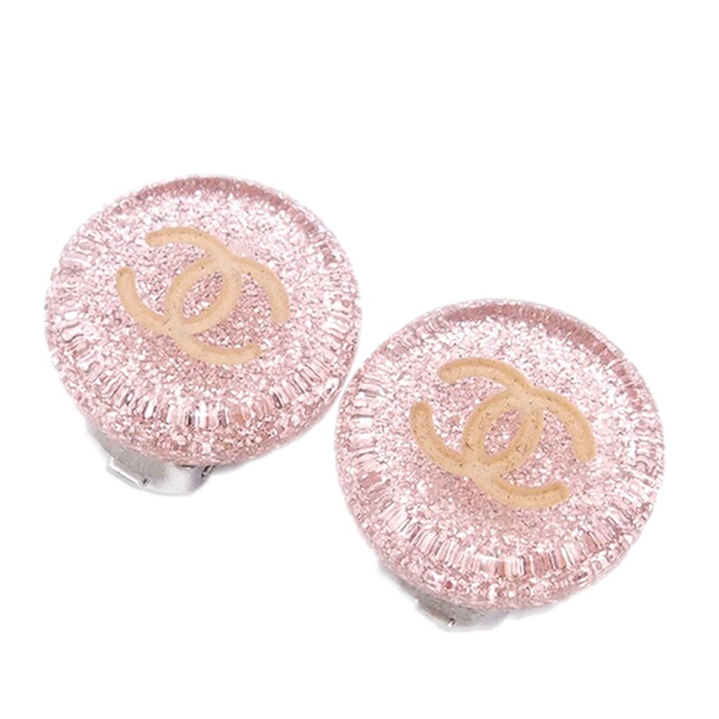 These earrings feature an interlocking CC in a resin hardware and back clip-on closures.