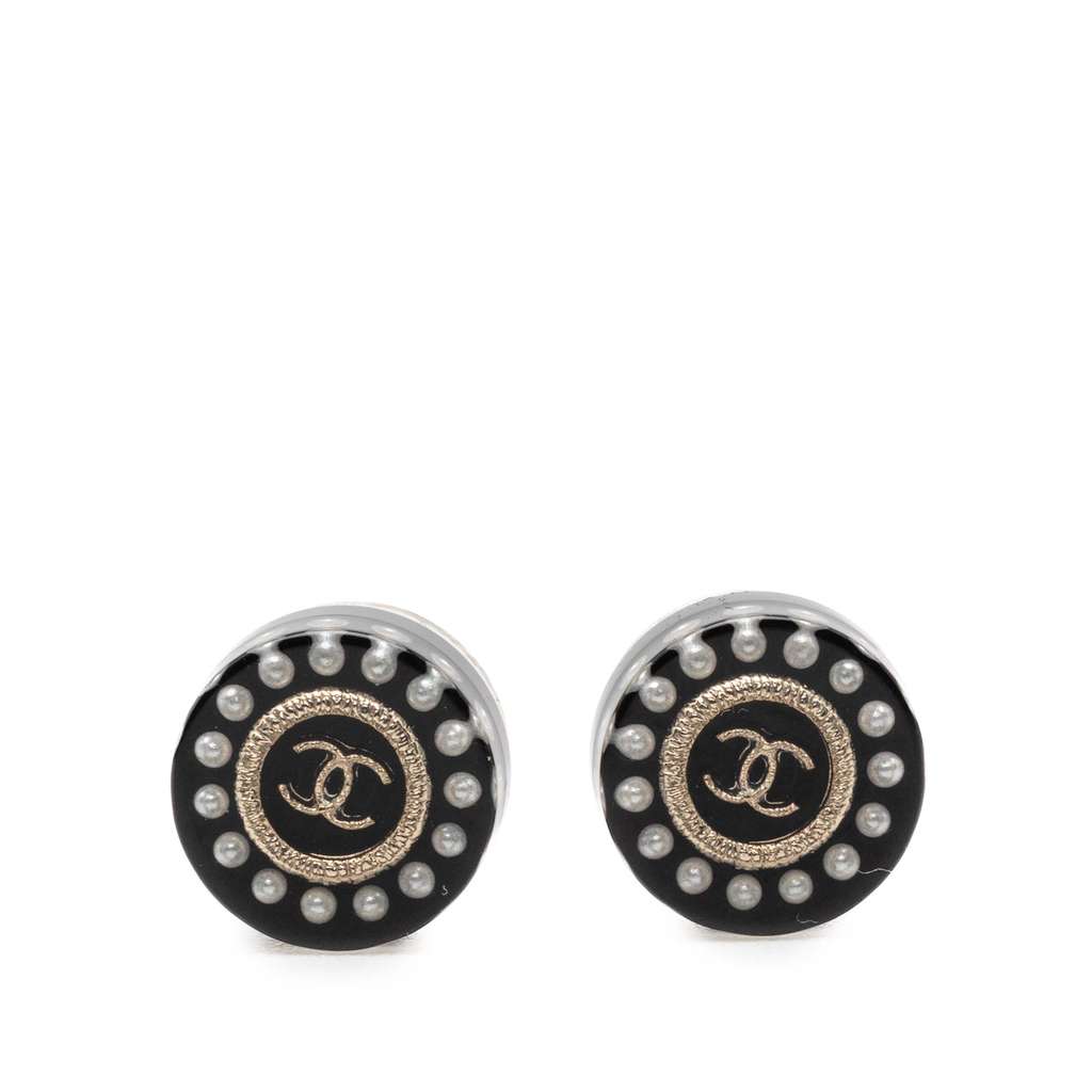 Chanel Resin Faux Pearl CC Round Push Back Earrings Black