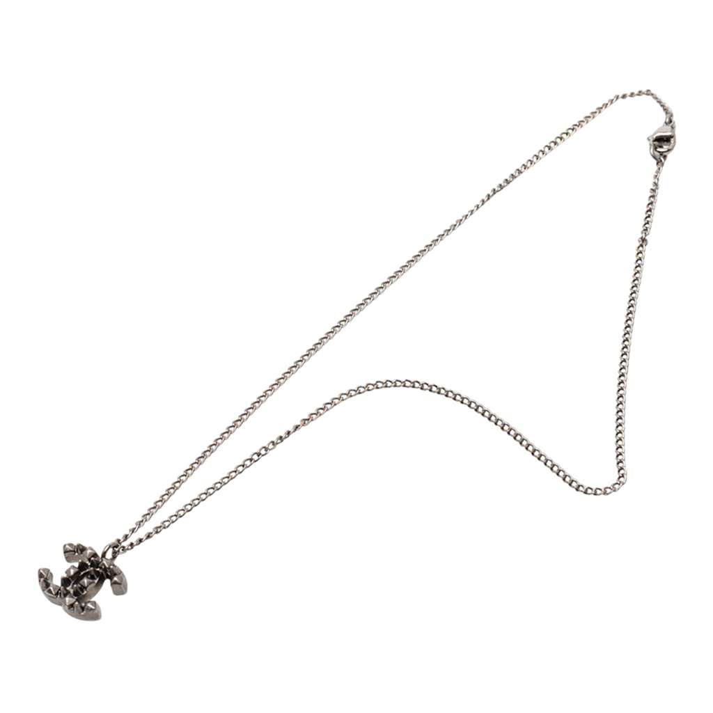 Chanel Ruthenium Plated CC Spiked Pendant Necklace Black Bra