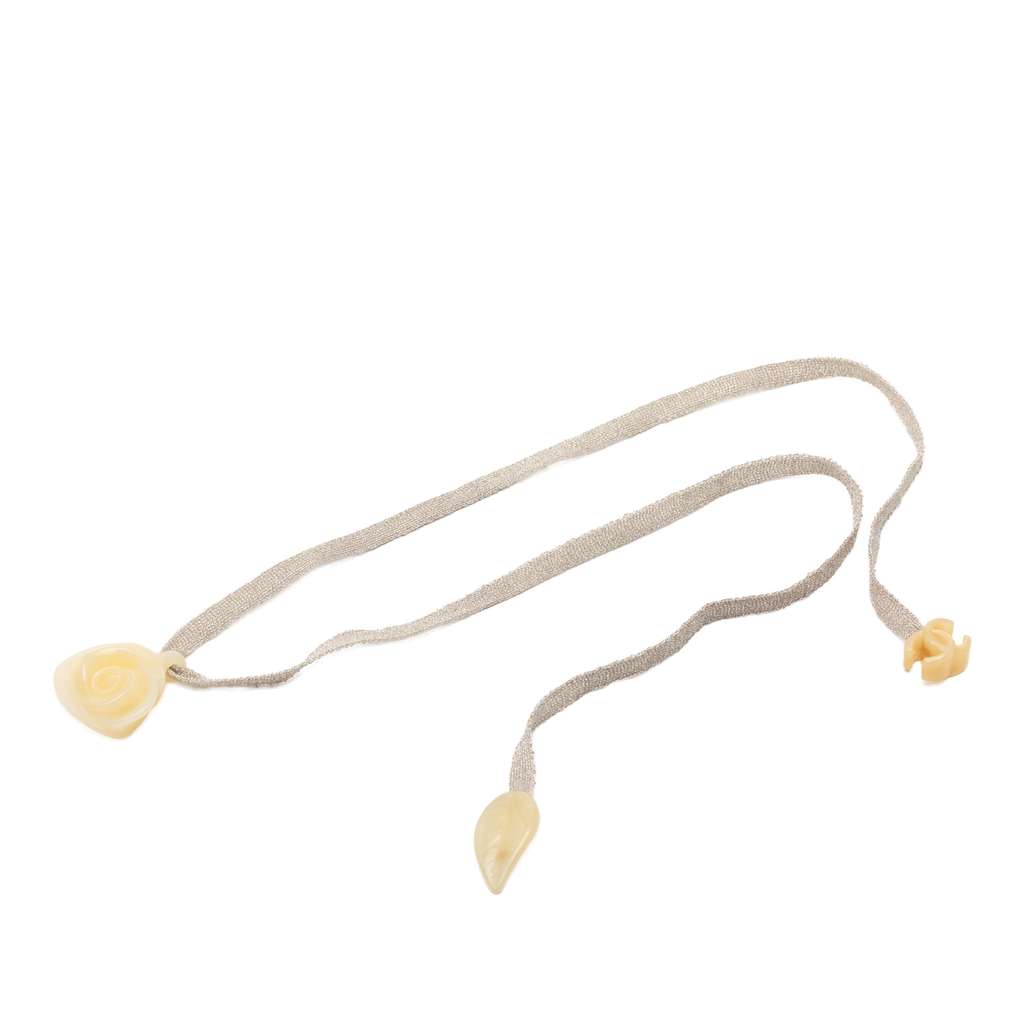 Chanel Satin and Resin Camellia Choker Necklace Silver Satin