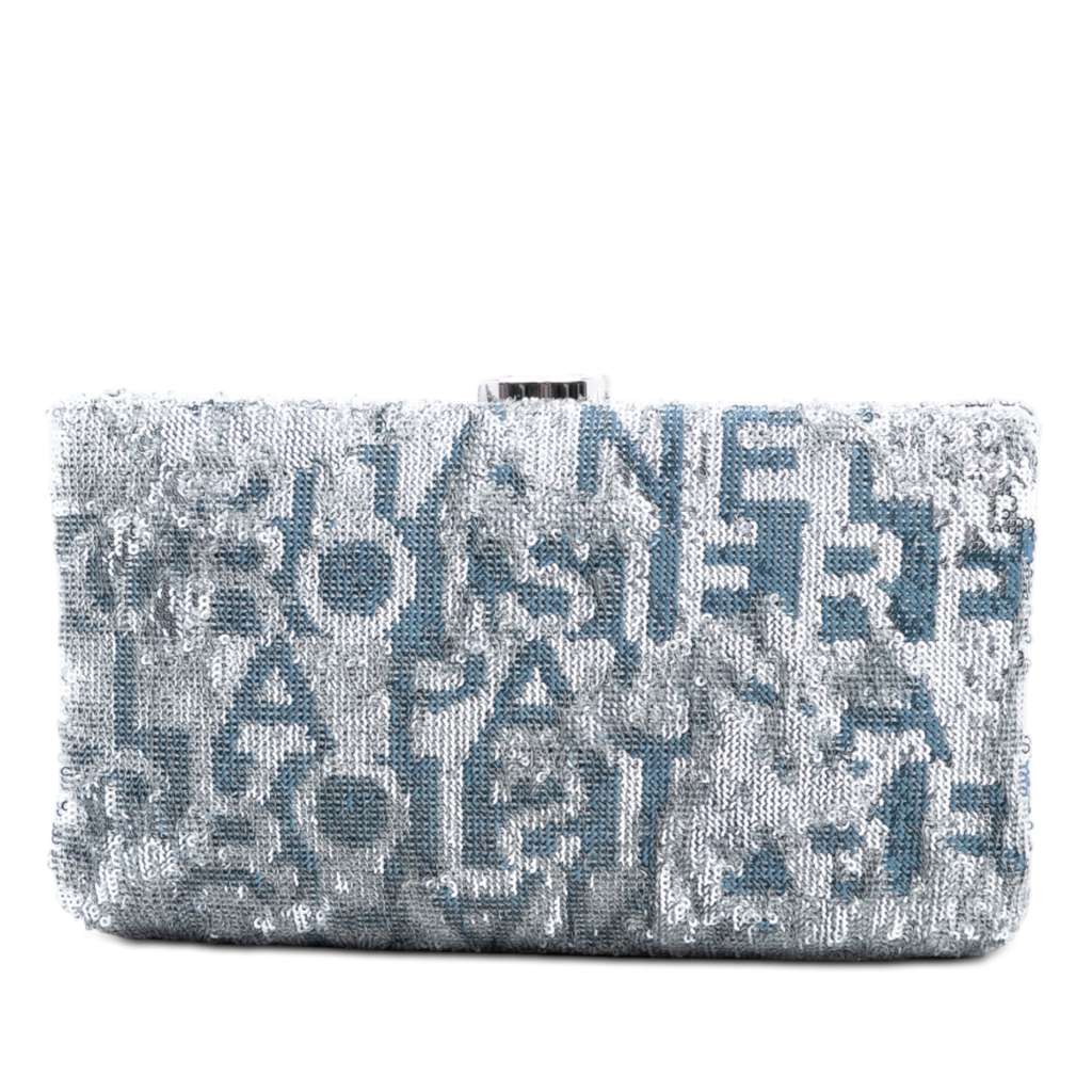 Chanel Satin Sequin Embroidered La Pausa Evening Clutch Silv