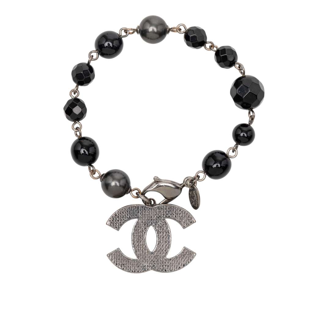 Chanel Silver Plated CC Faux Pearl Bracelet Silver Metal