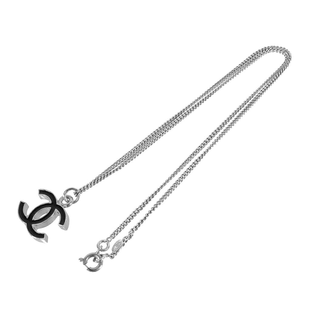 Chanel Silver Plated CC Pendant Necklace Silver Metal
