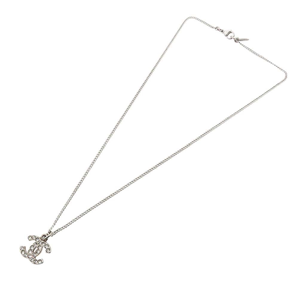 Chanel Silver Plated CC Rhinestone Pendant Necklace Silver M