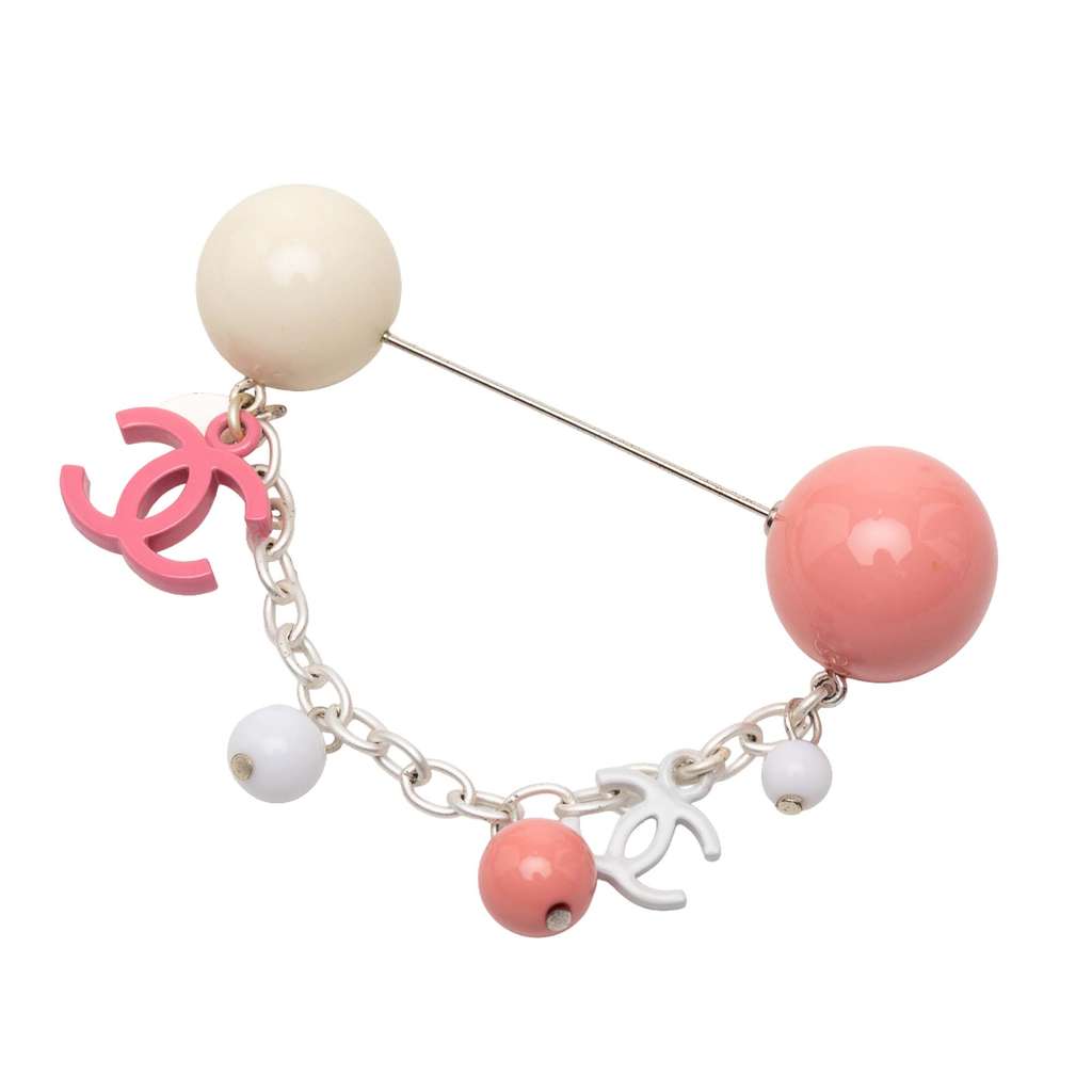 Chanel Silver Plated Resin CC Charm Pin Brooch Silver Metal