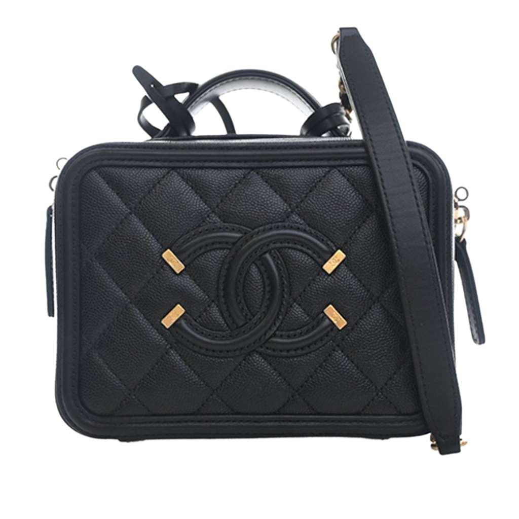 Chanel Small Caviar CC Filigree Vanity Case Black Mini Leath