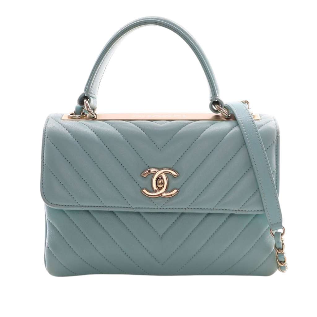 Chanel Small Chevron Lambskin Trendy CC Top Handle Flap Blue
