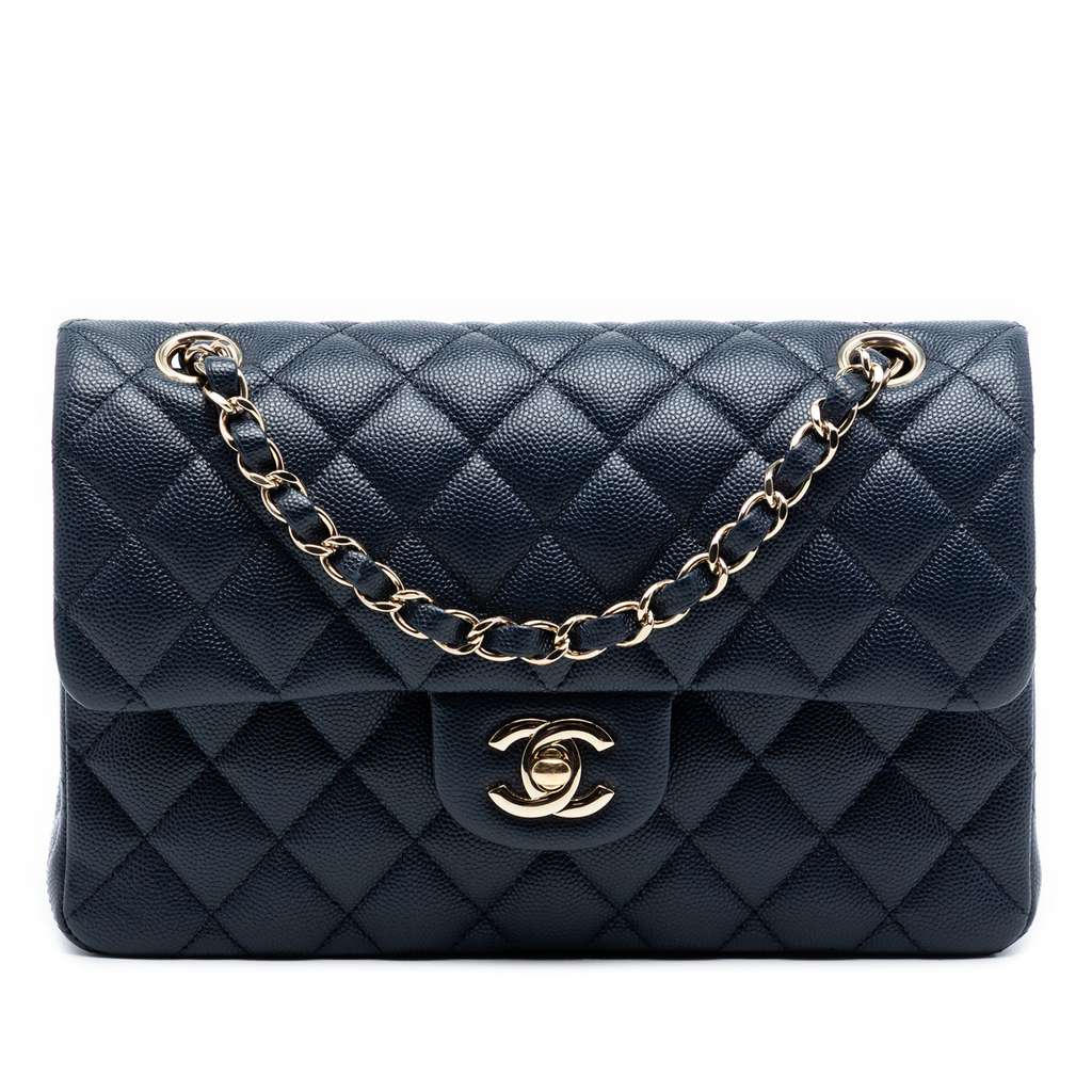 Chanel Small Classic Caviar Double Flap Blue Small Leather