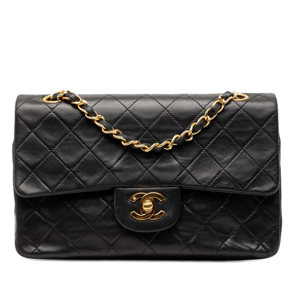 Chanel Small Classic Lambskin Double Flap Black Small Leathe