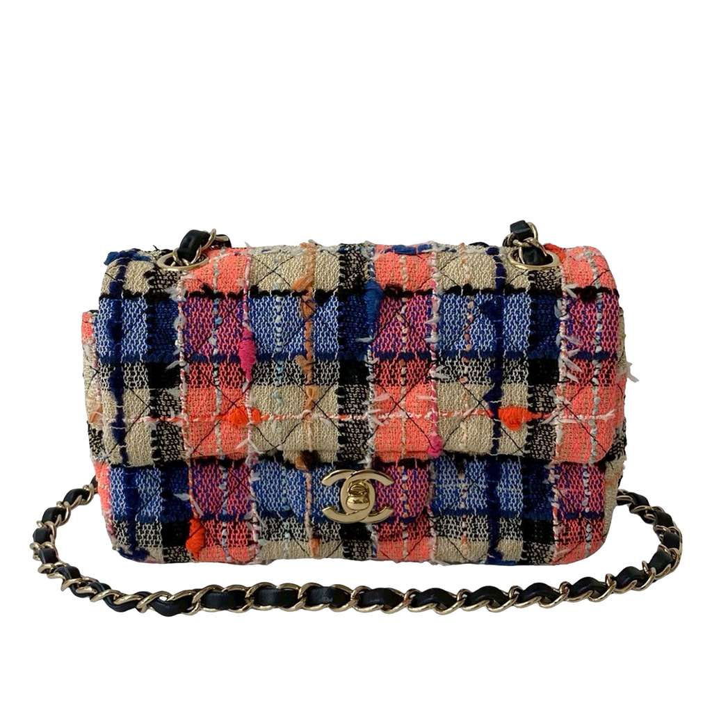 Chanel Small Classic Tweed Single Flap Beige Small Tweed