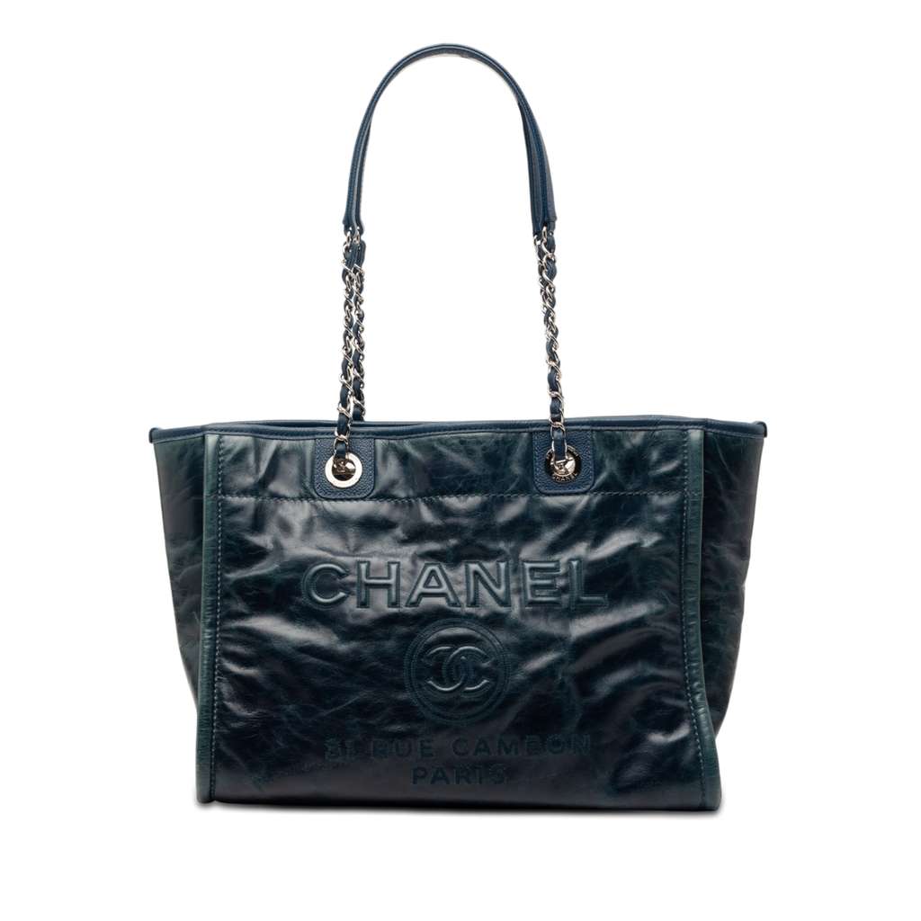 Chanel Small Glazed Calfskin Deauville Tote Blue Large Leath