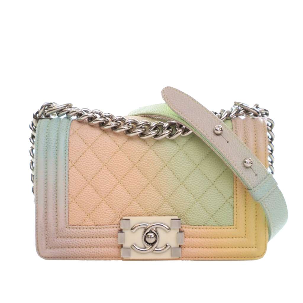 Chanel Small Quilted Caviar Rainbow Boy Flap Orange Small Le