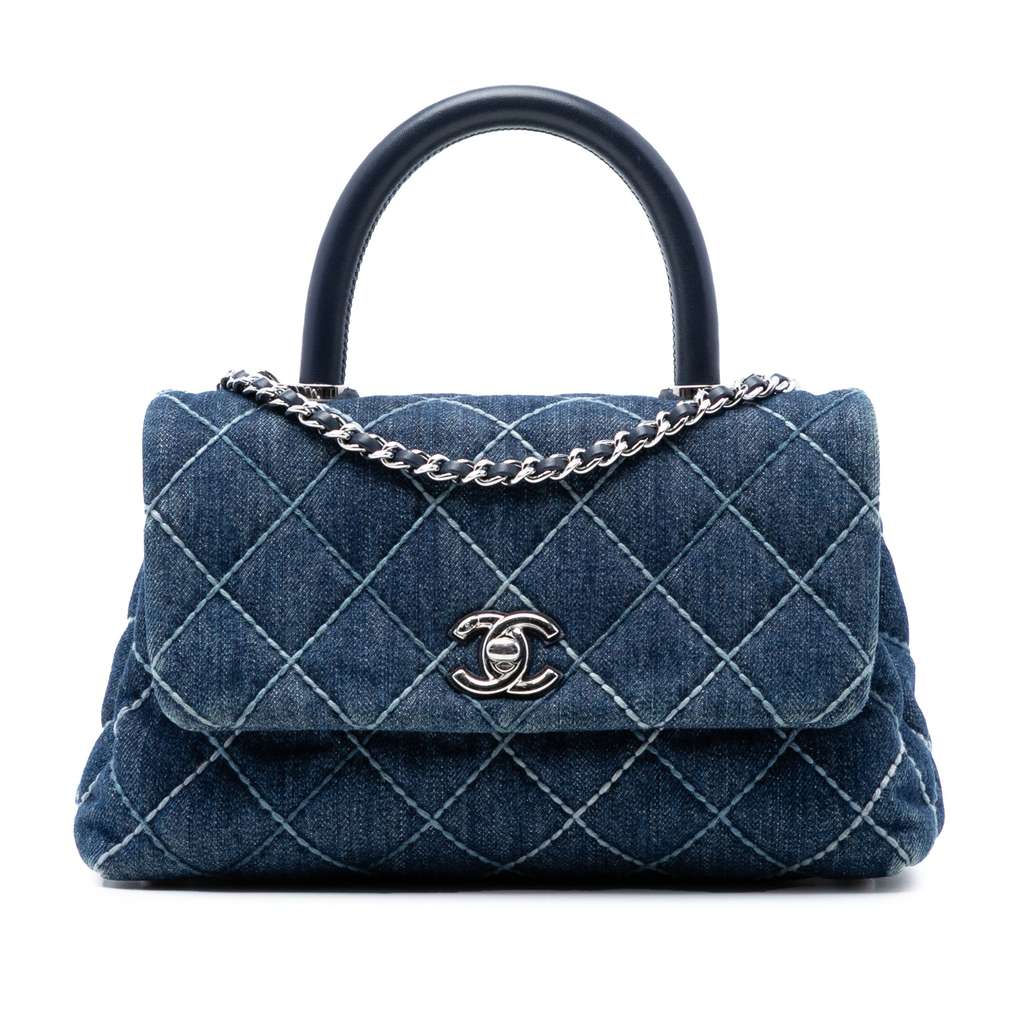 Chanel Small Quilted Denim Coco Top Handle Bag Blue Small De