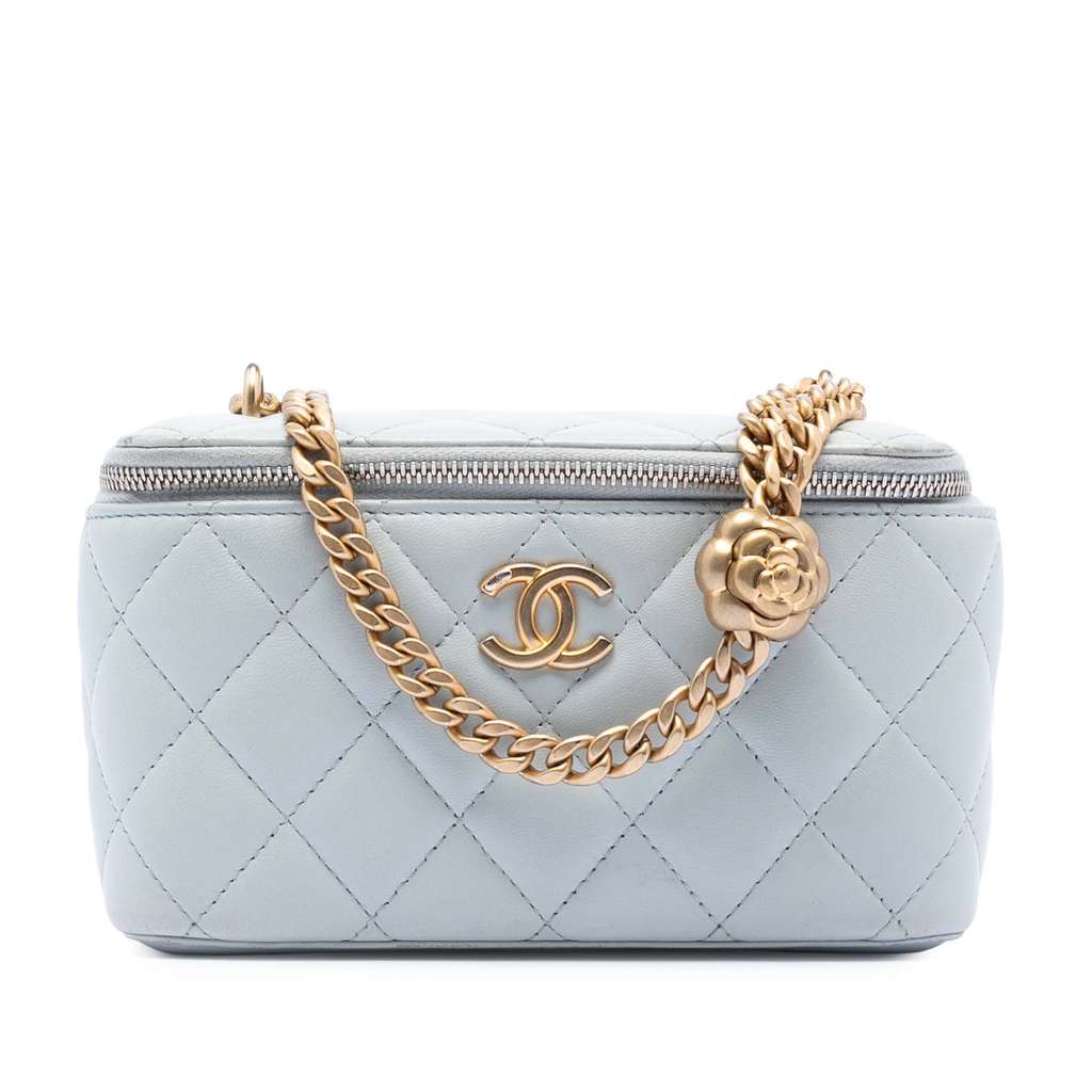 Chanel Small Quilted Lambskin Sweet Camellia Vanity Case wit