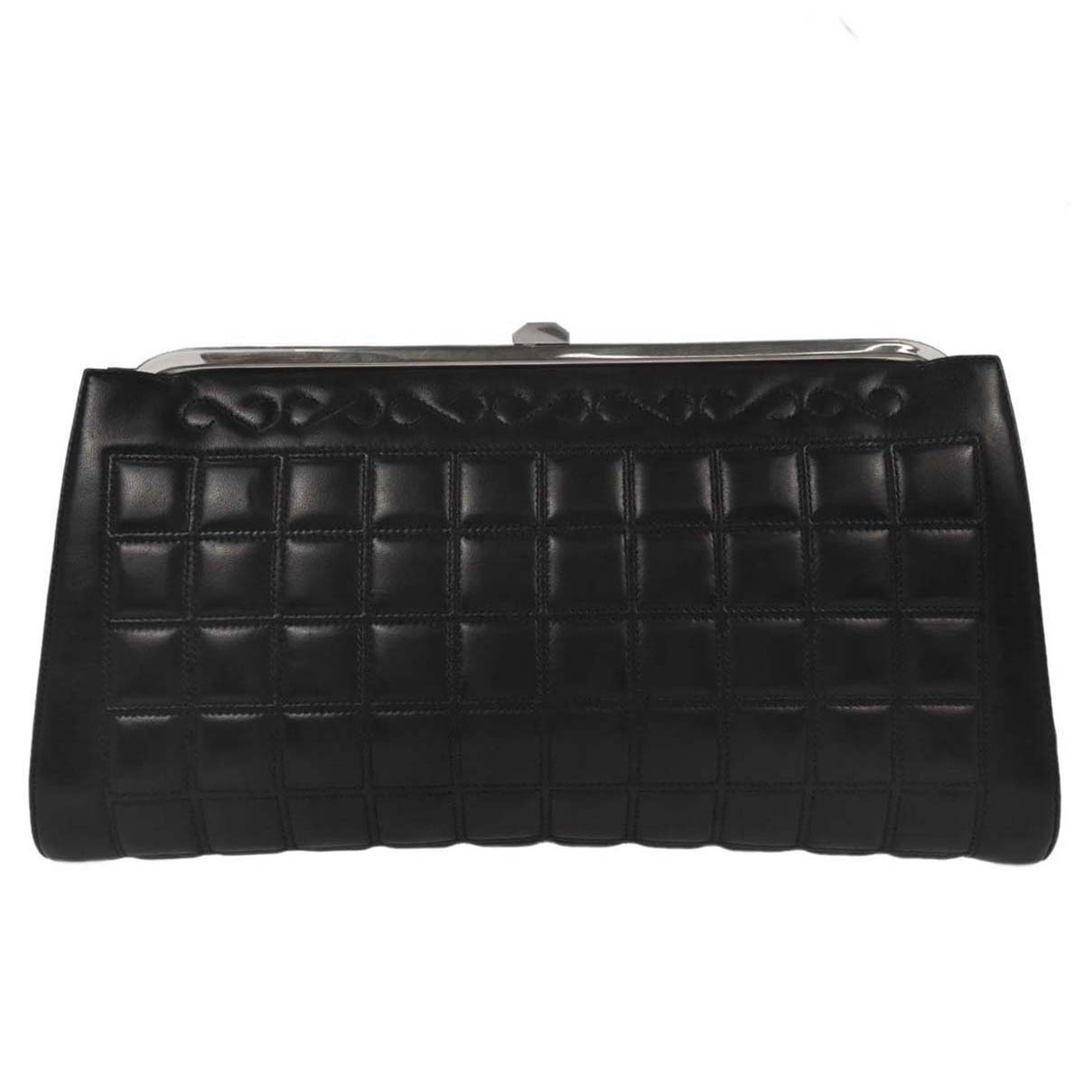 Chanel Square Stitch Frame Clutch Black Large Leather