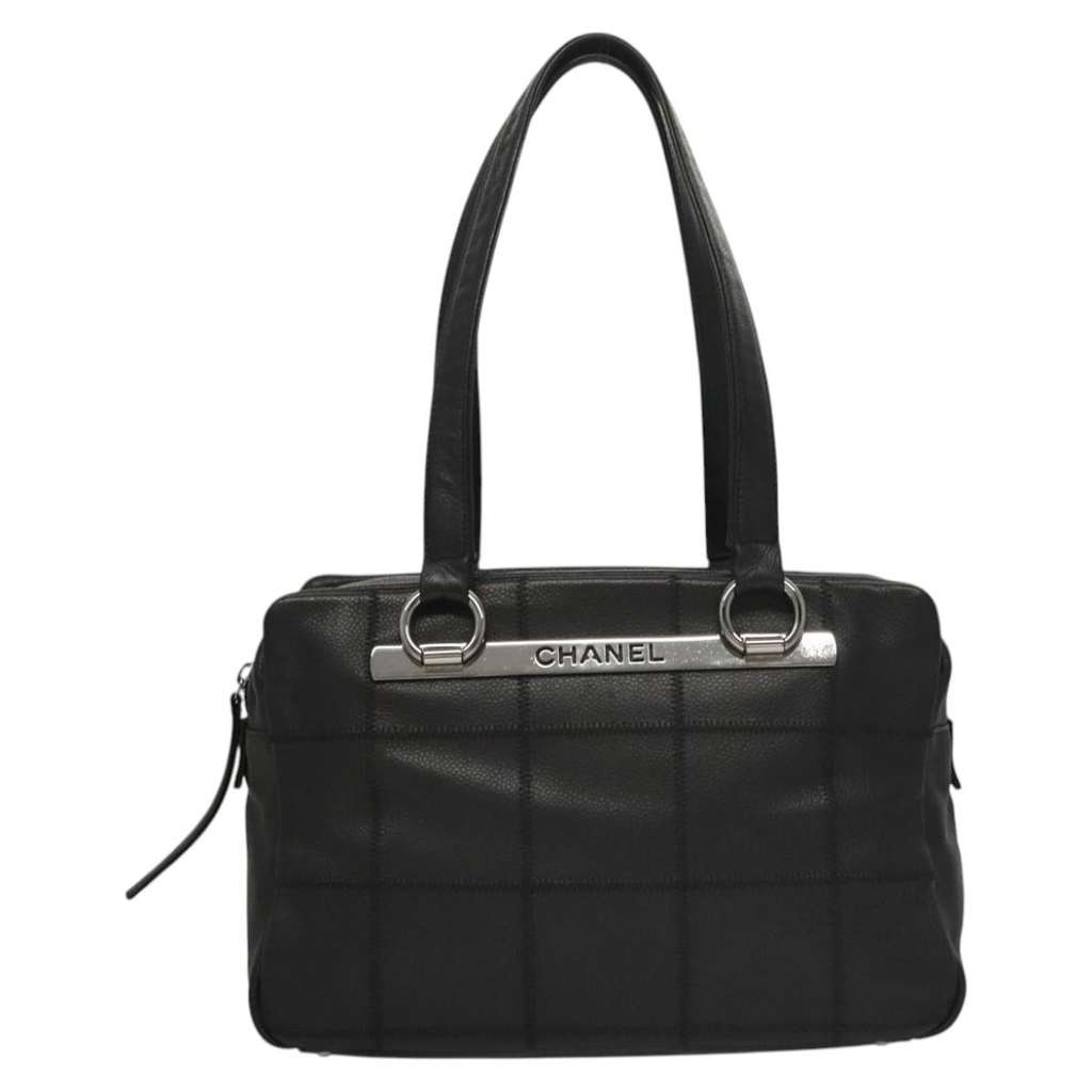 Chanel Square Stitch Shoulder Bag Black Medium Leather