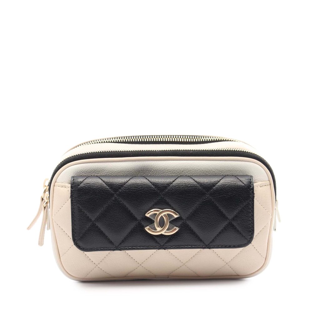Chanel Tricolor Quilted Goatskin In and Out Belt Bag Brown M