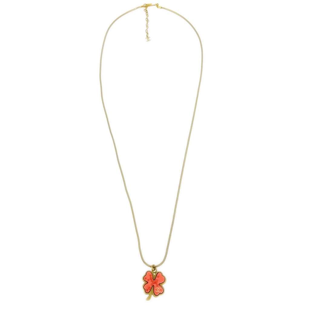 Chanel Vintage CC Clover Pendant Necklace Gold Metal