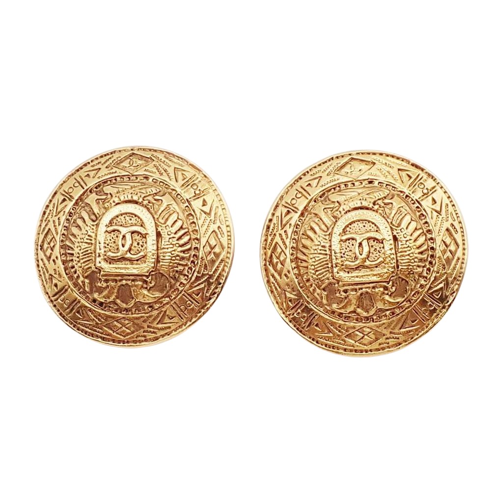 Chanel Vintage CC Crest Round Clip-On Earrings Gold