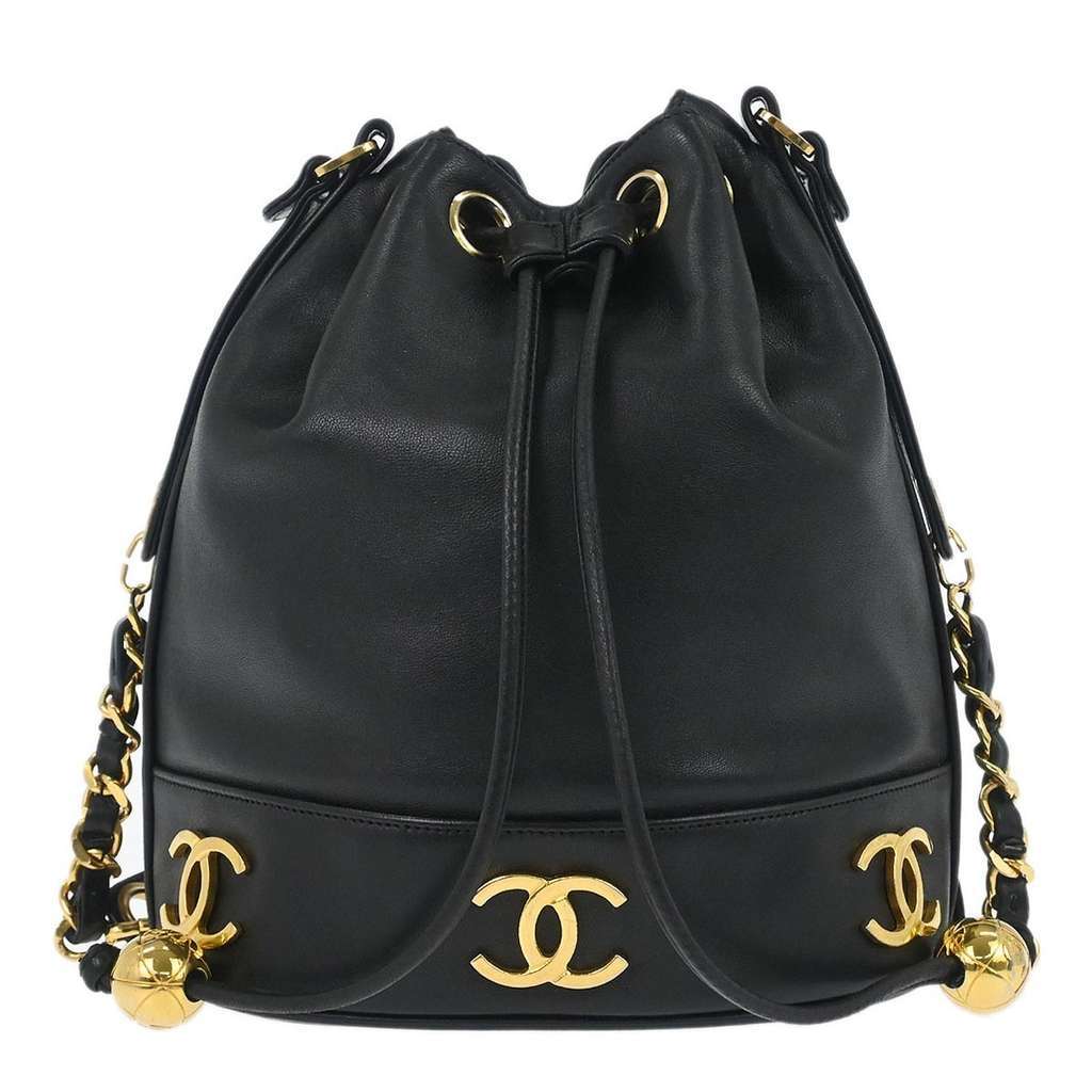 Chanel Vintage CC Drawstring Bucket Bag Black Small Leather