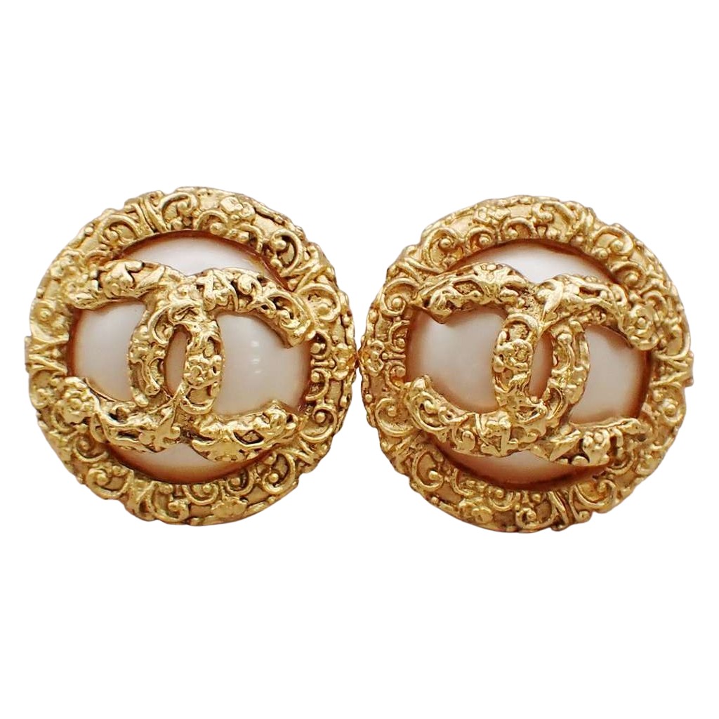 Chanel Vintage CC Logo Round Clip-on Earrings Gold