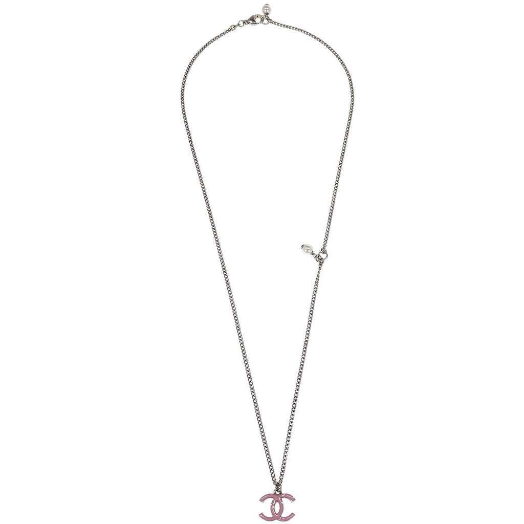 Chanel Vintage CC Pendant Long Necklace Silver Metal