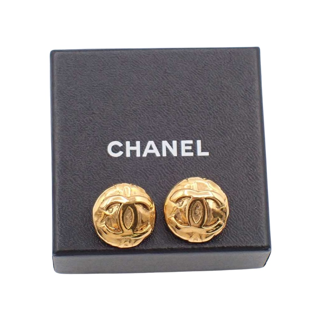 Chanel Vintage CC Round Button Clip-On Earrings Gold