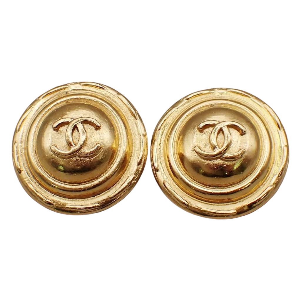 Chanel Vintage CC Round Button Clip-On Earrings Gold