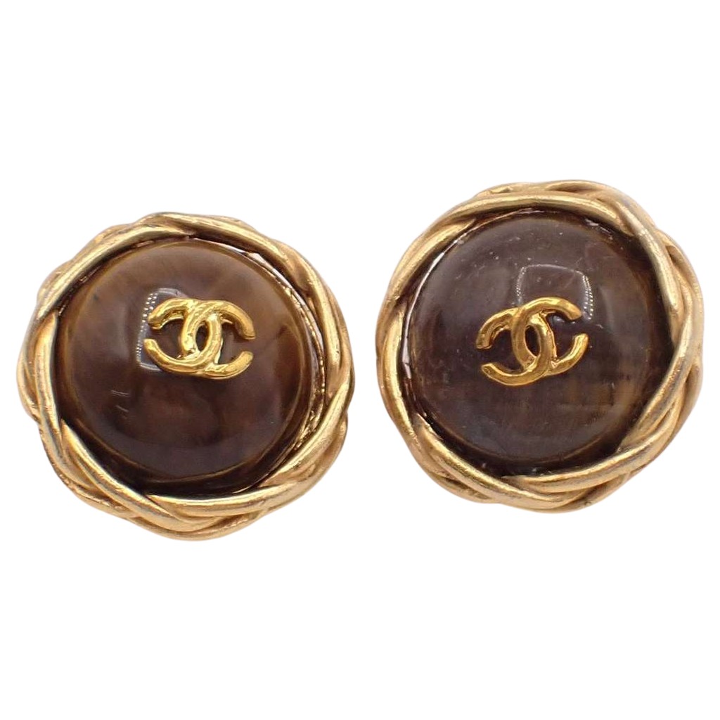 Chanel Vintage CC Round Button Clip-On Earrings Brown