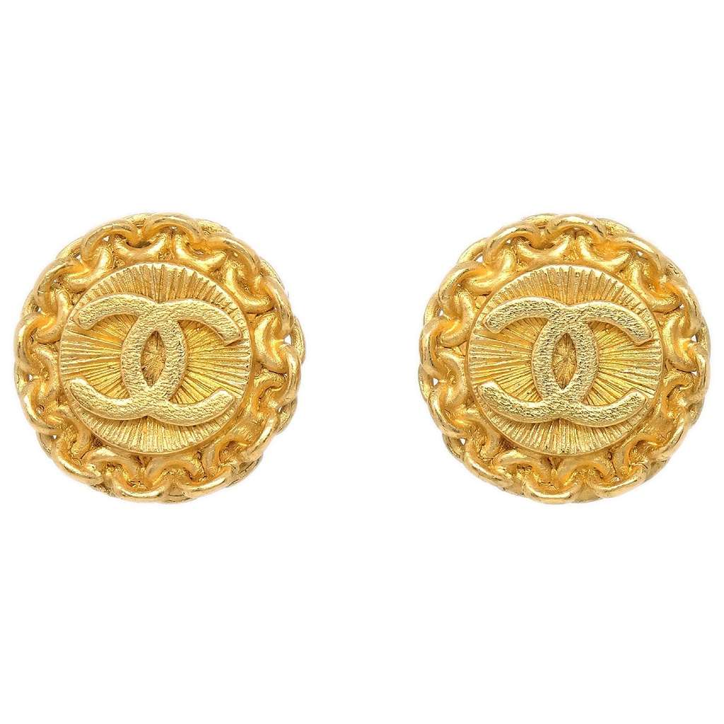 Chanel Vintage CC Round Chain Clip-On Earrings Gold
